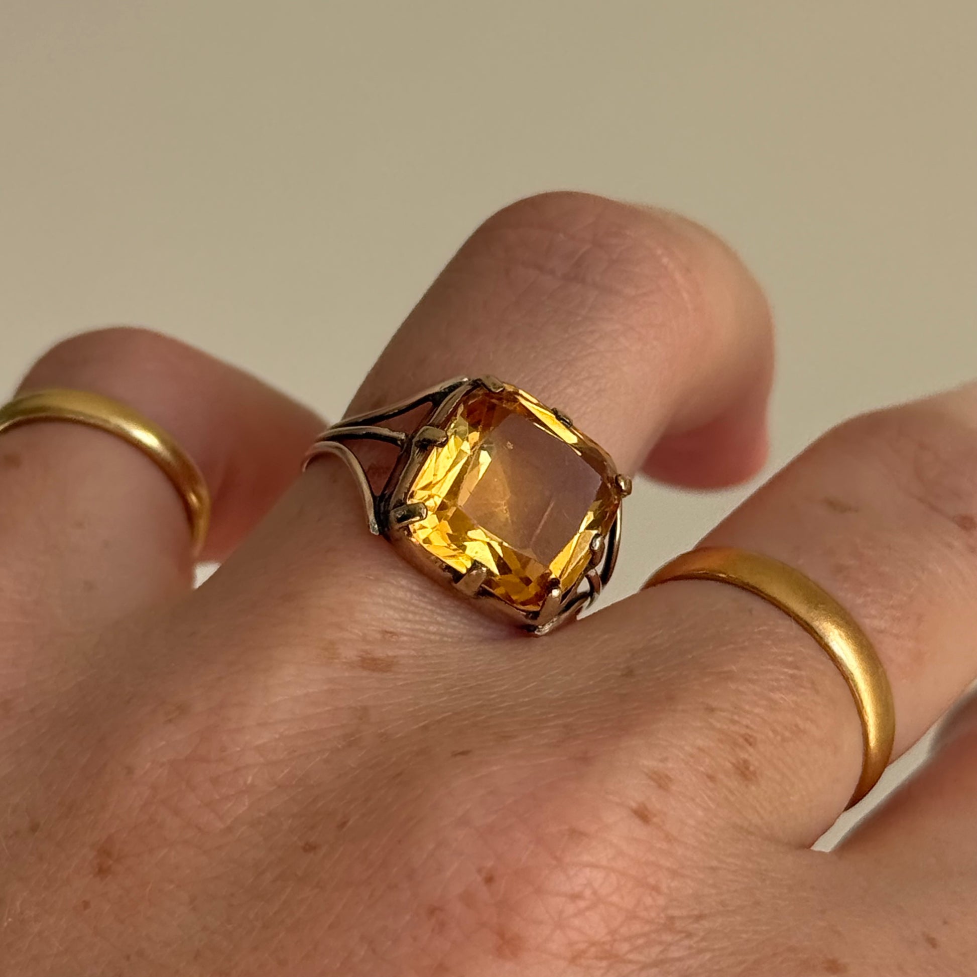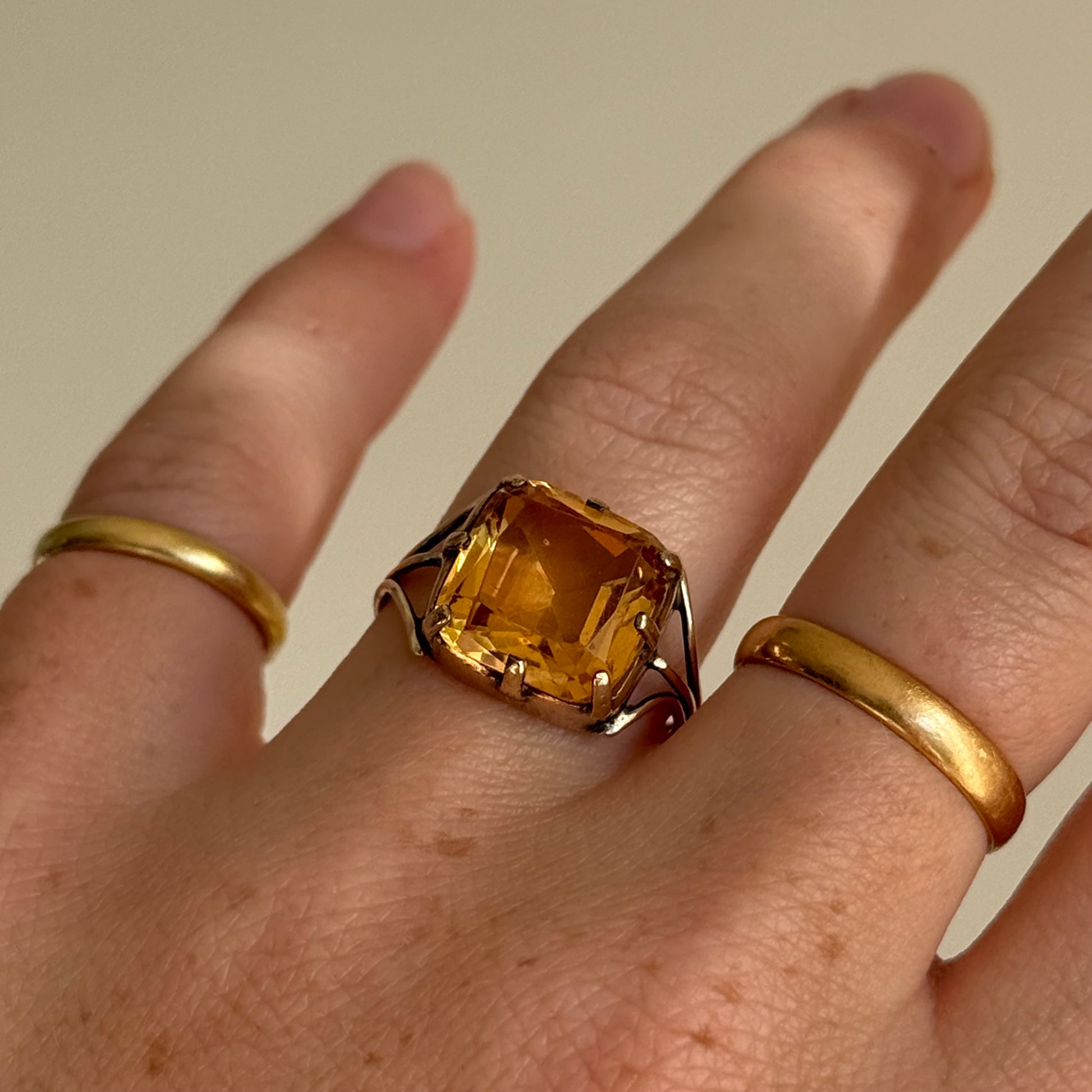 Early Victorian Citrine Ring in 9 Carat Gold; Circa 1840