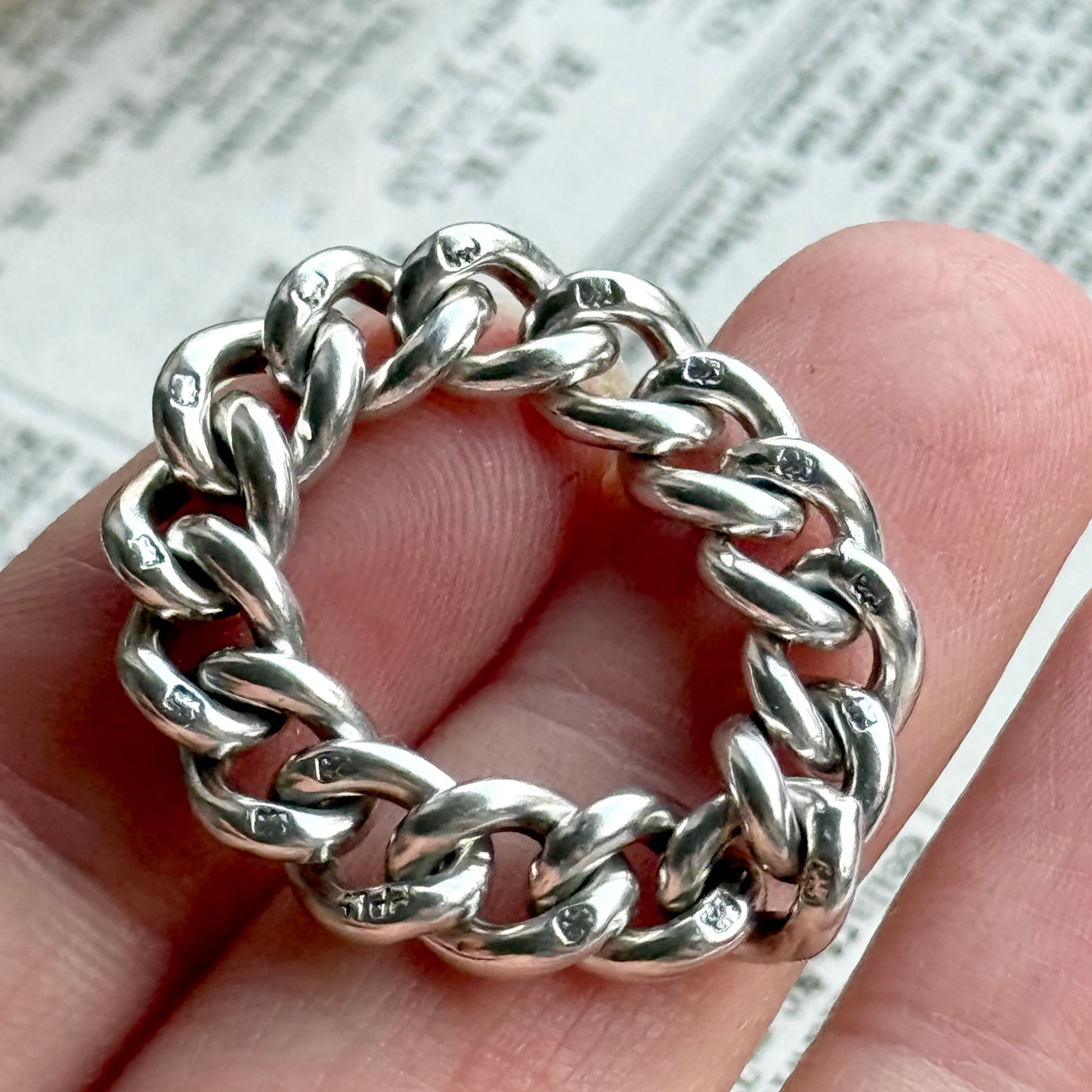 A wonderfully tactile Victorian ring, created from a heavy solid sterling silver curb chain. This unusual design captures all the charm of antique silverwork. Substantial, characterful, and beautifully made.