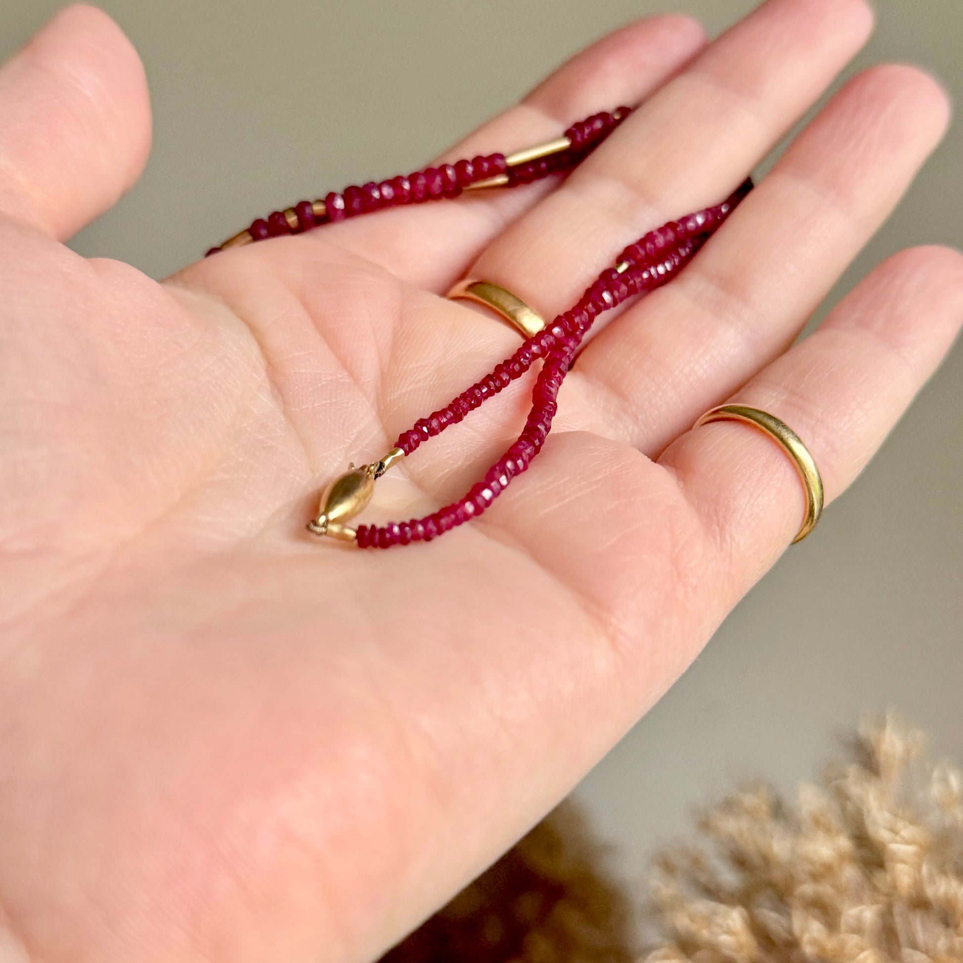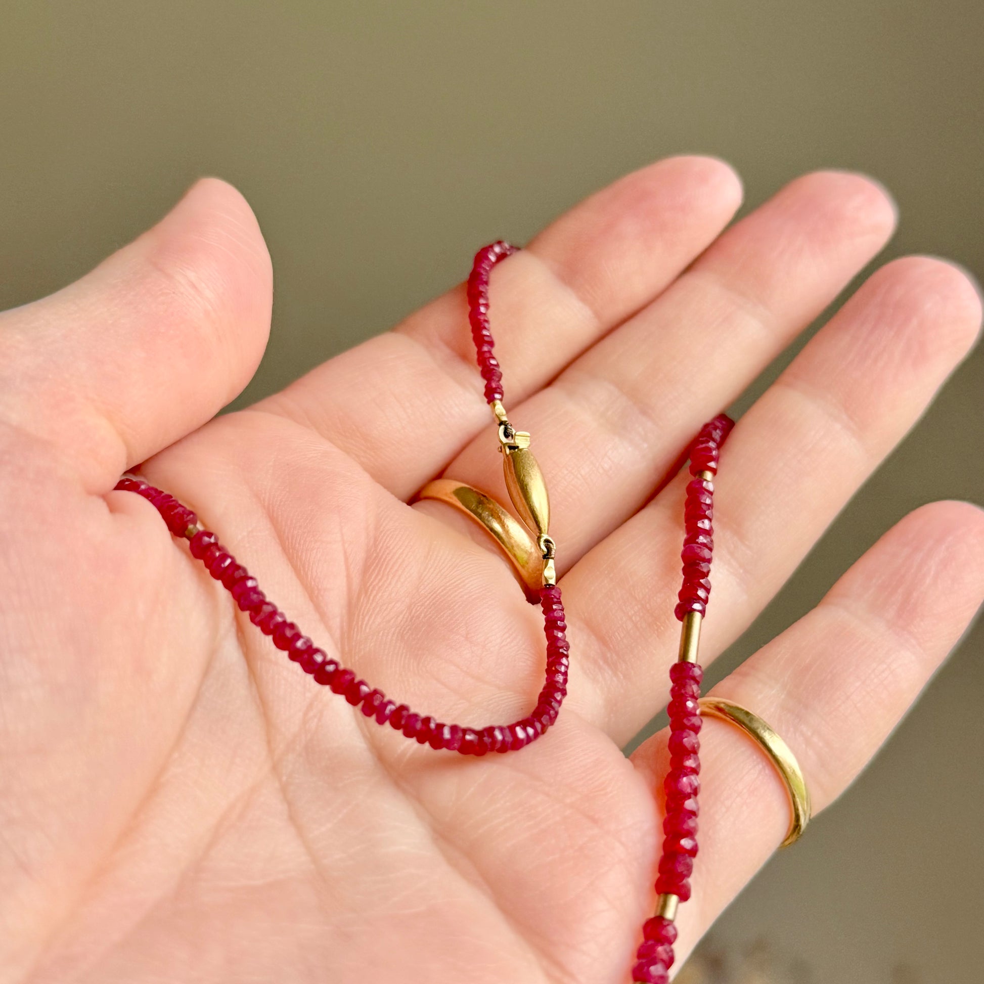 Each ruby bead has been expertly cut and selected, graduating seamlessly from rich, larger stones at the front to the tiniest, most delicate beads near the clasp. A testament to the skill and precision of its maker.