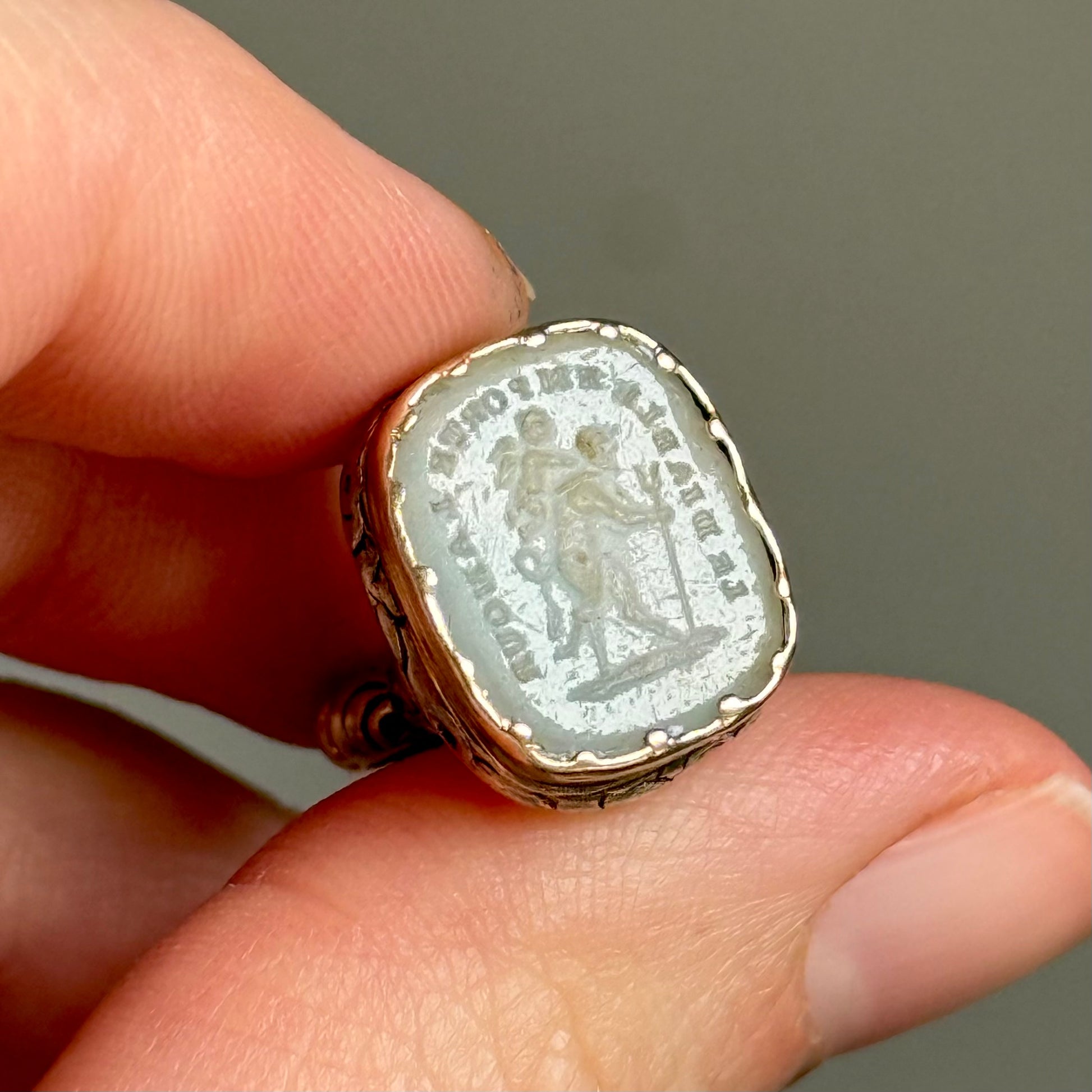 A rare and sought after Georgian fob, perfect for collectors of intaglios, seals, and motto jewellery. A wonderfully expressive piece of early 19th century craftsmanship