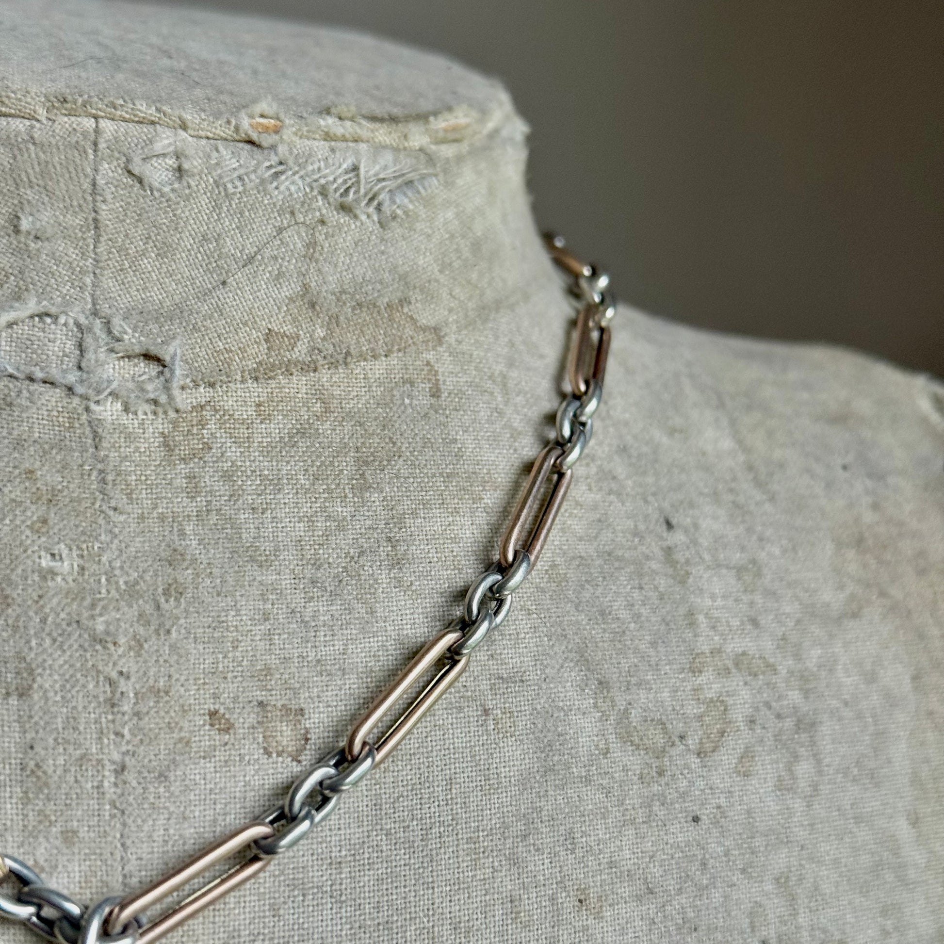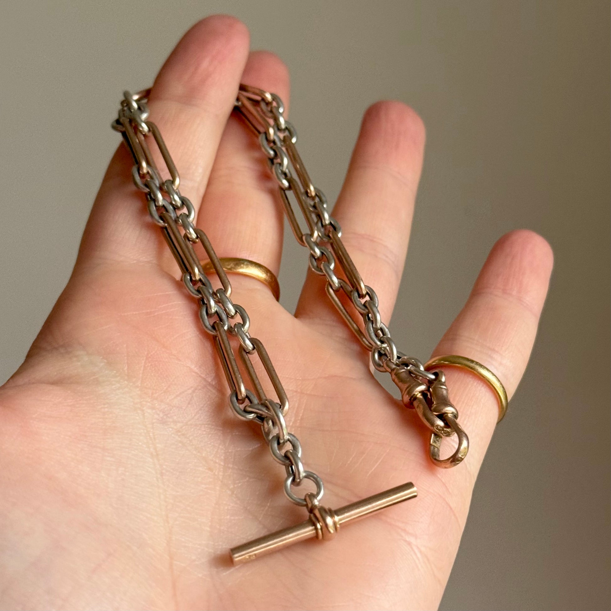 Antique Trombone Rose Gold & Silver Albert Chain; Circa 1880