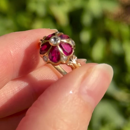 Antique Ruby & Diamond Viola Ring in 18 Carat Gold
