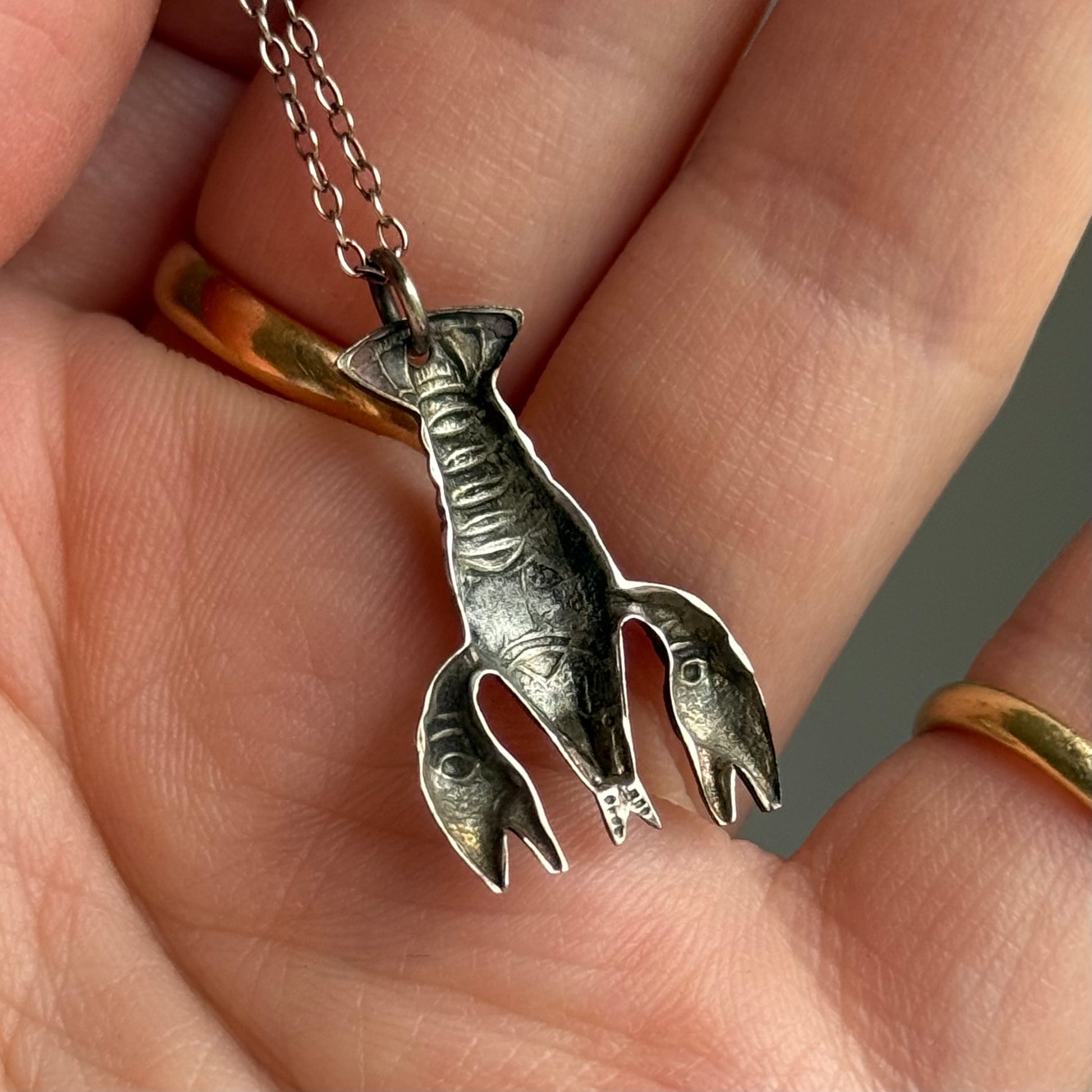 Now thoughtfully converted into a pendant with a simple loop, it is perfect for layering with other necklaces or wearing alone as a conversation starting statement. The pendant hangs from a delicate 18 inch chain chosen to complement the design beautifully.