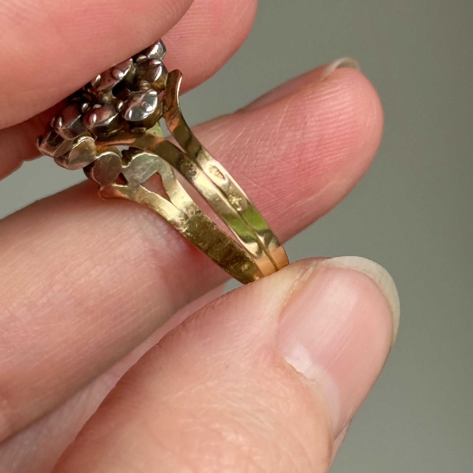 Antique Georgian Rose Cut Diamond Ring Gold and Silver; Circa 1820
