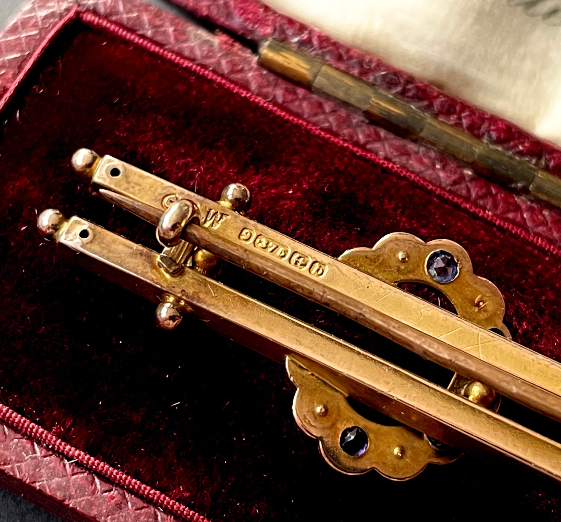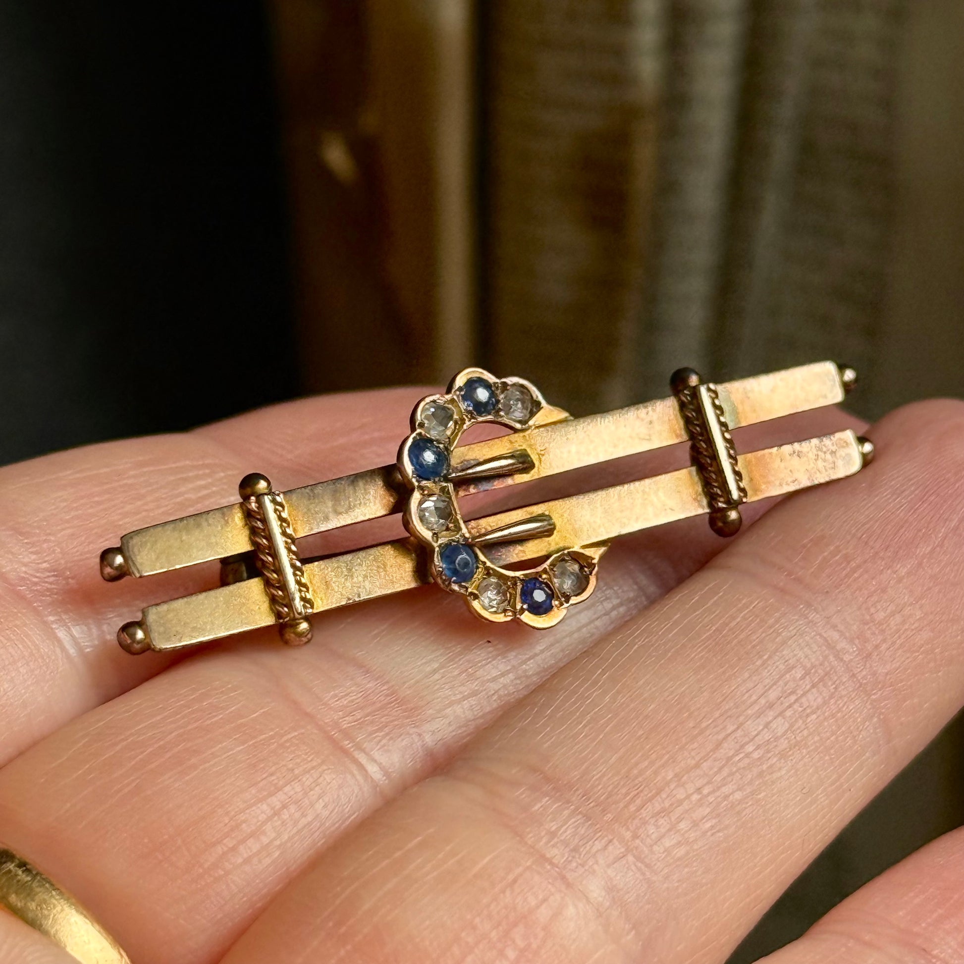 Antique Sapphire & Diamond Brooch in 9 Carat Gold; Circa 1901