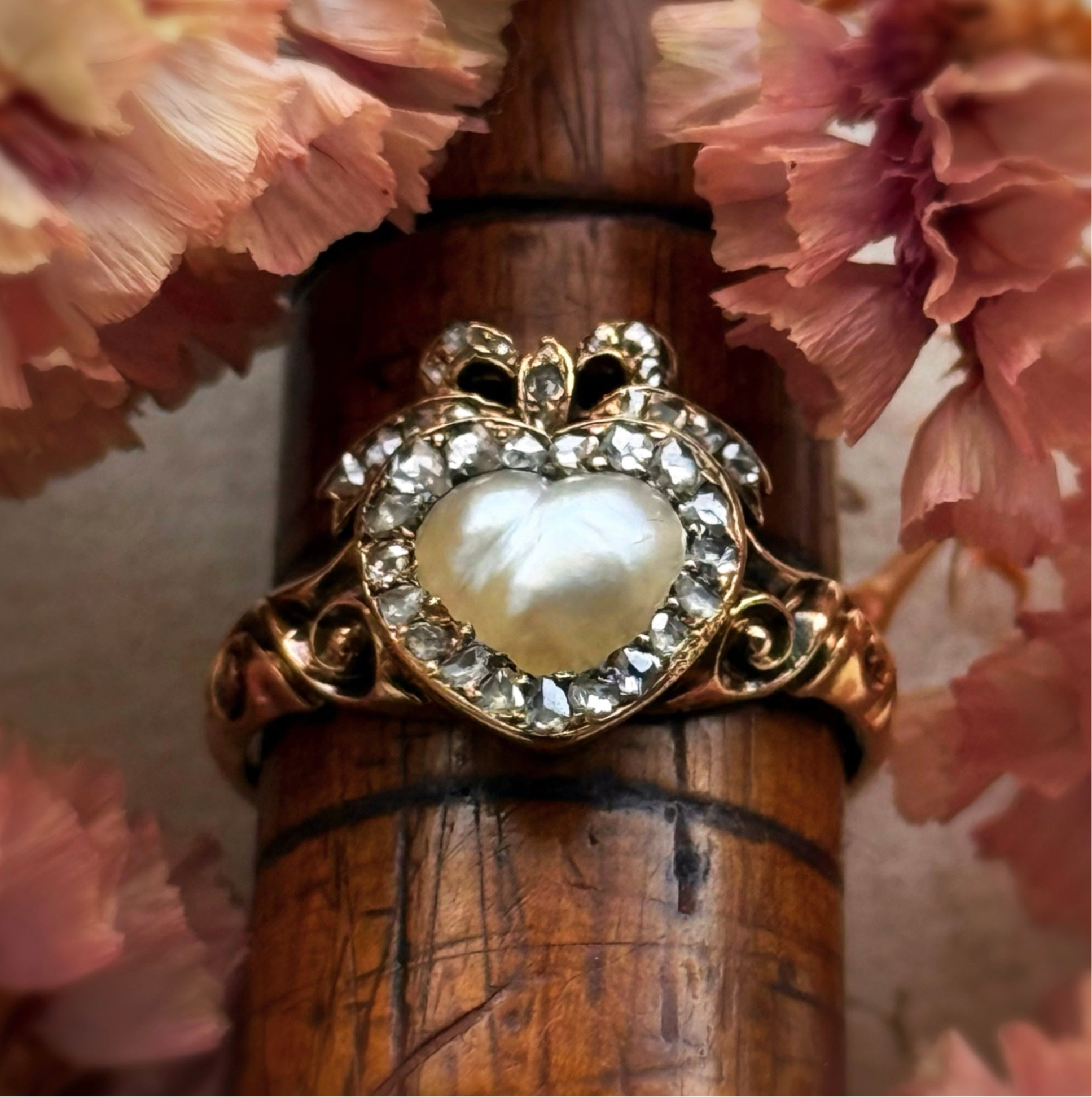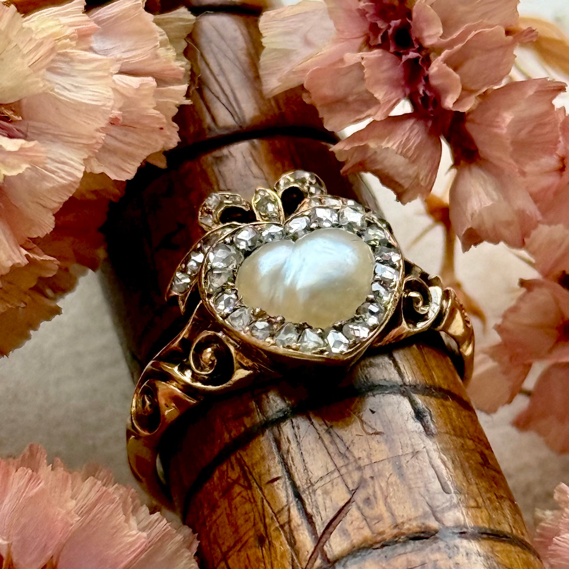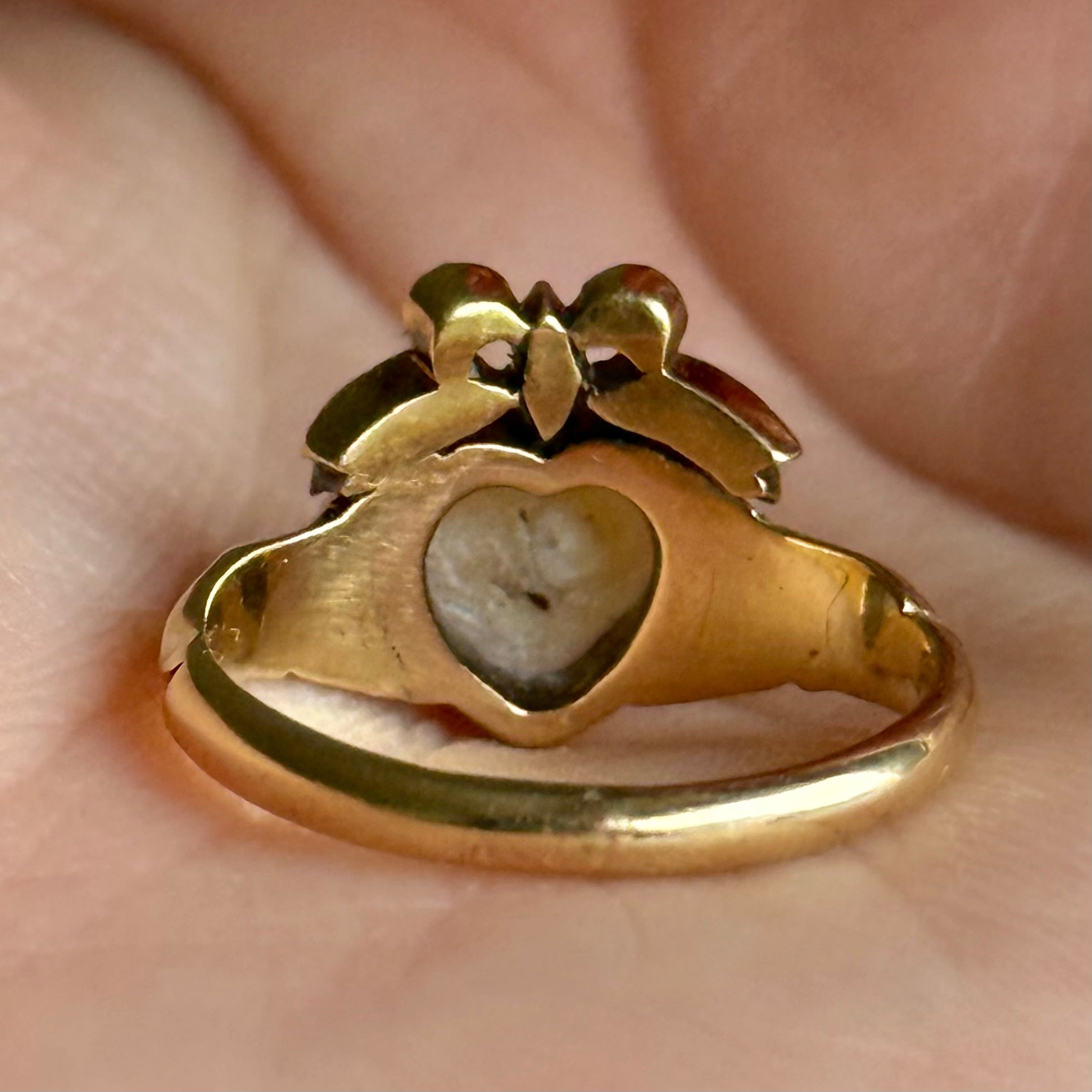 Antique Boxed Georgian Pearl & Diamond Ring in 18 Carat Gold; Circa 1800