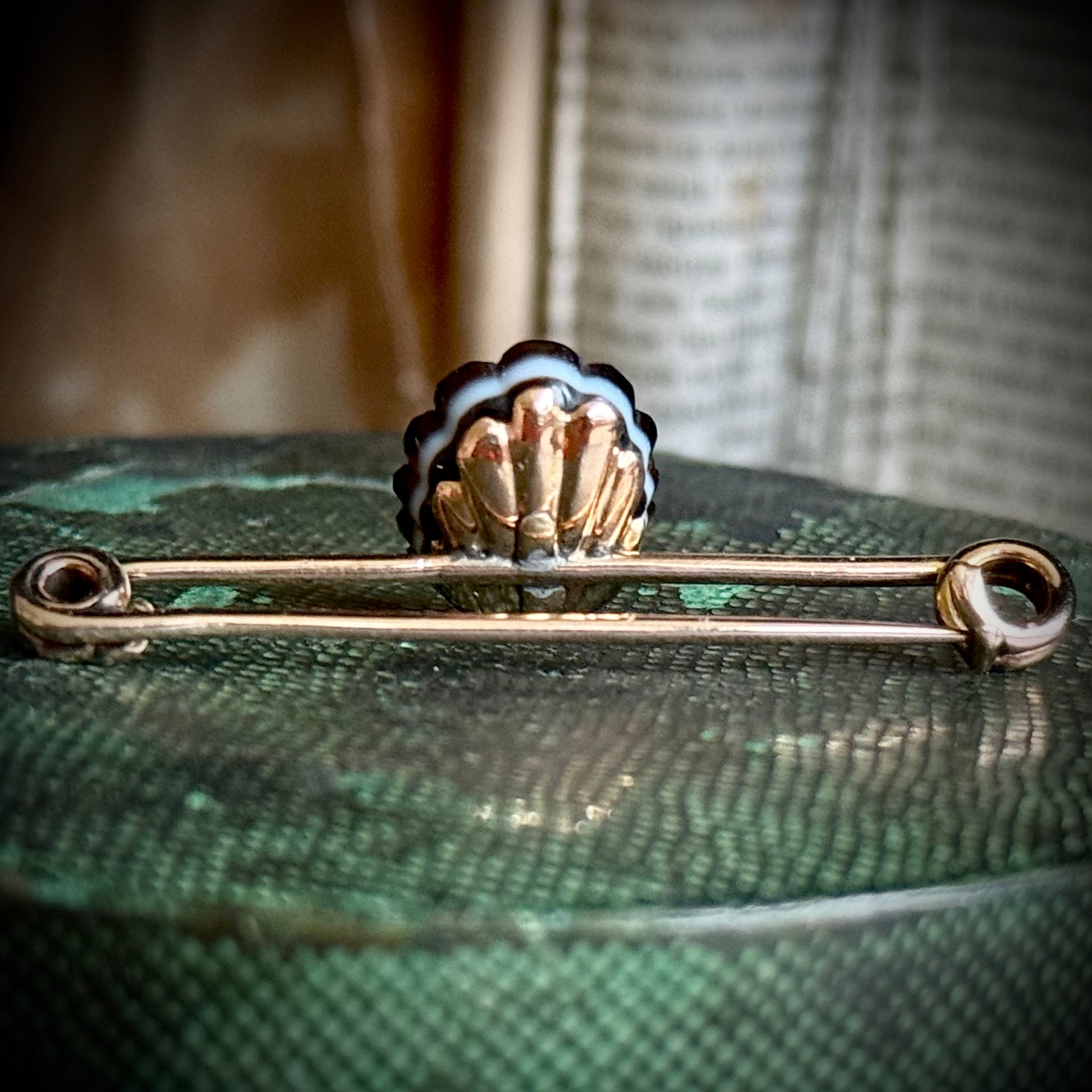 The shell is mounted onto a simple yet elegant 9 carat gold bar brooch, allowing the craftsmanship of the agate to take centre stage. The restrained gold setting is typical of the Victorian era, where natural motifs and symbolic detail were favoured over excess.