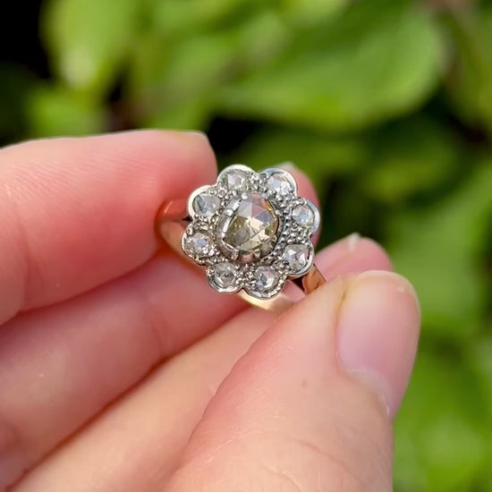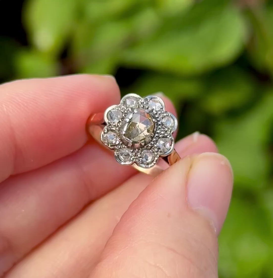 Antique Rose Cut Cluster Ring in 14 Carat Gold; Circa 1880