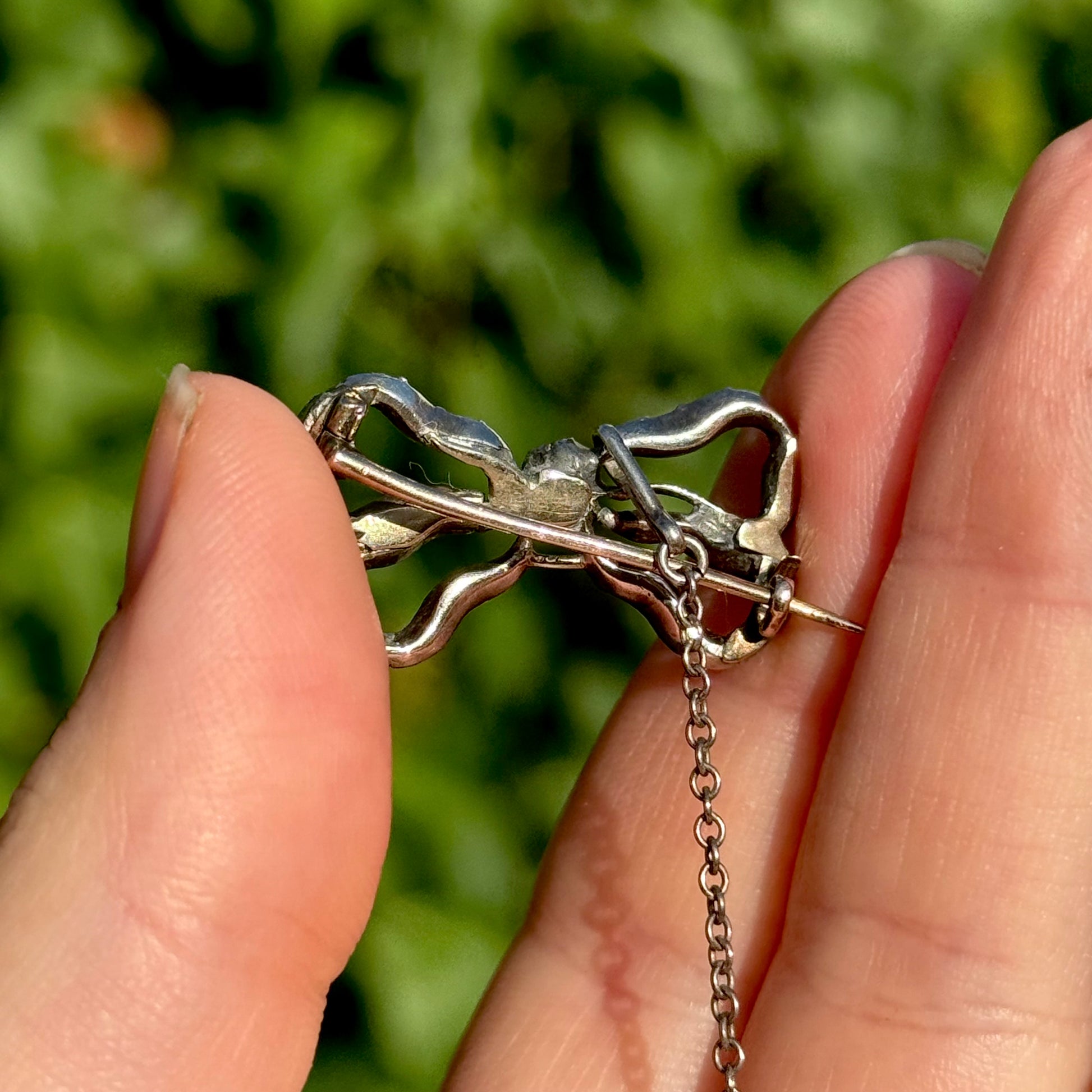 Mid Victorian Diamond Bow Brooch in Silver and Gold; Circa 1860