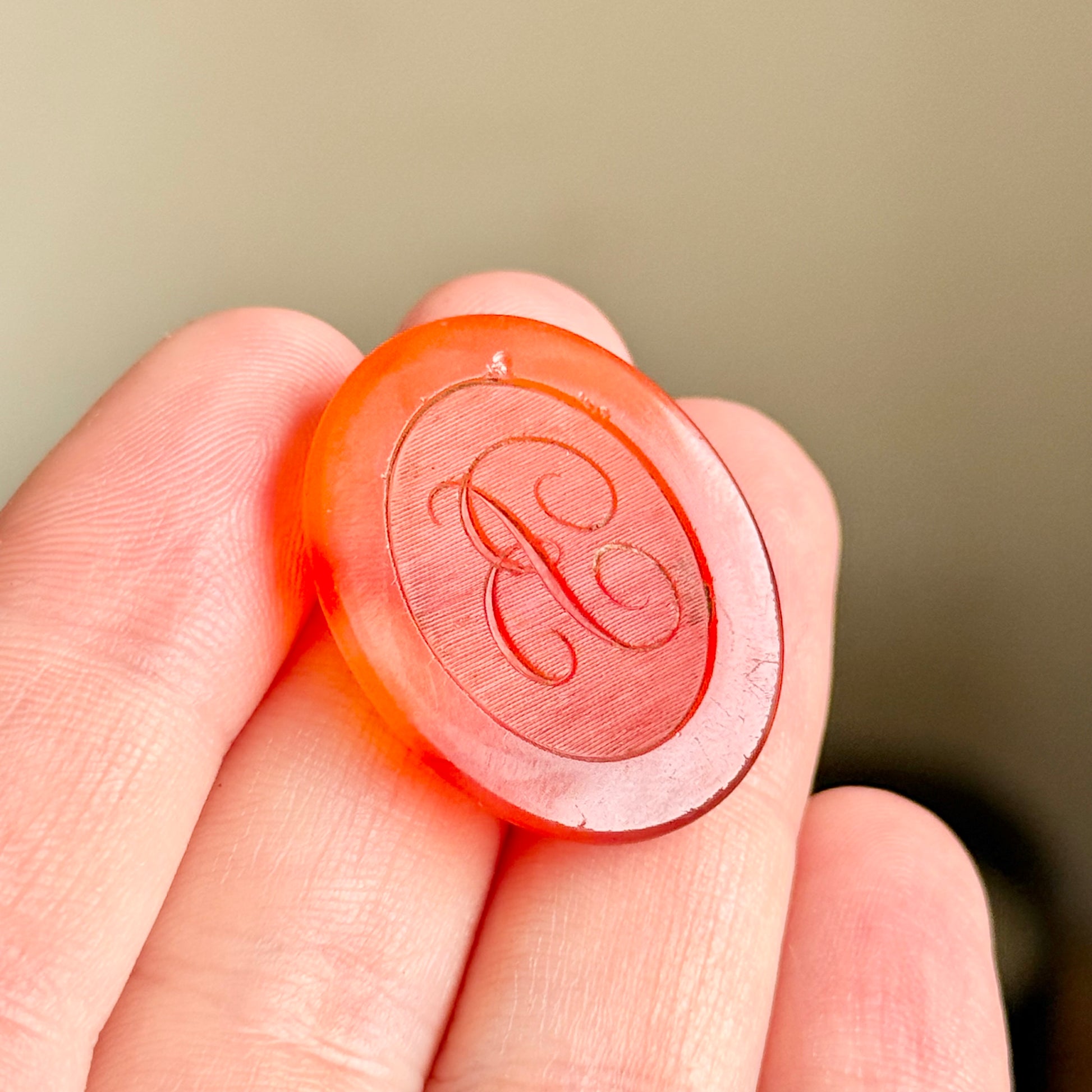 Expertly engraved in classic flowing script, the letter 'B' is carved into the surface with precision and artistry typical of the early to mid 19th century. The B is surrounded by a textured oval surface which allows it to stand.