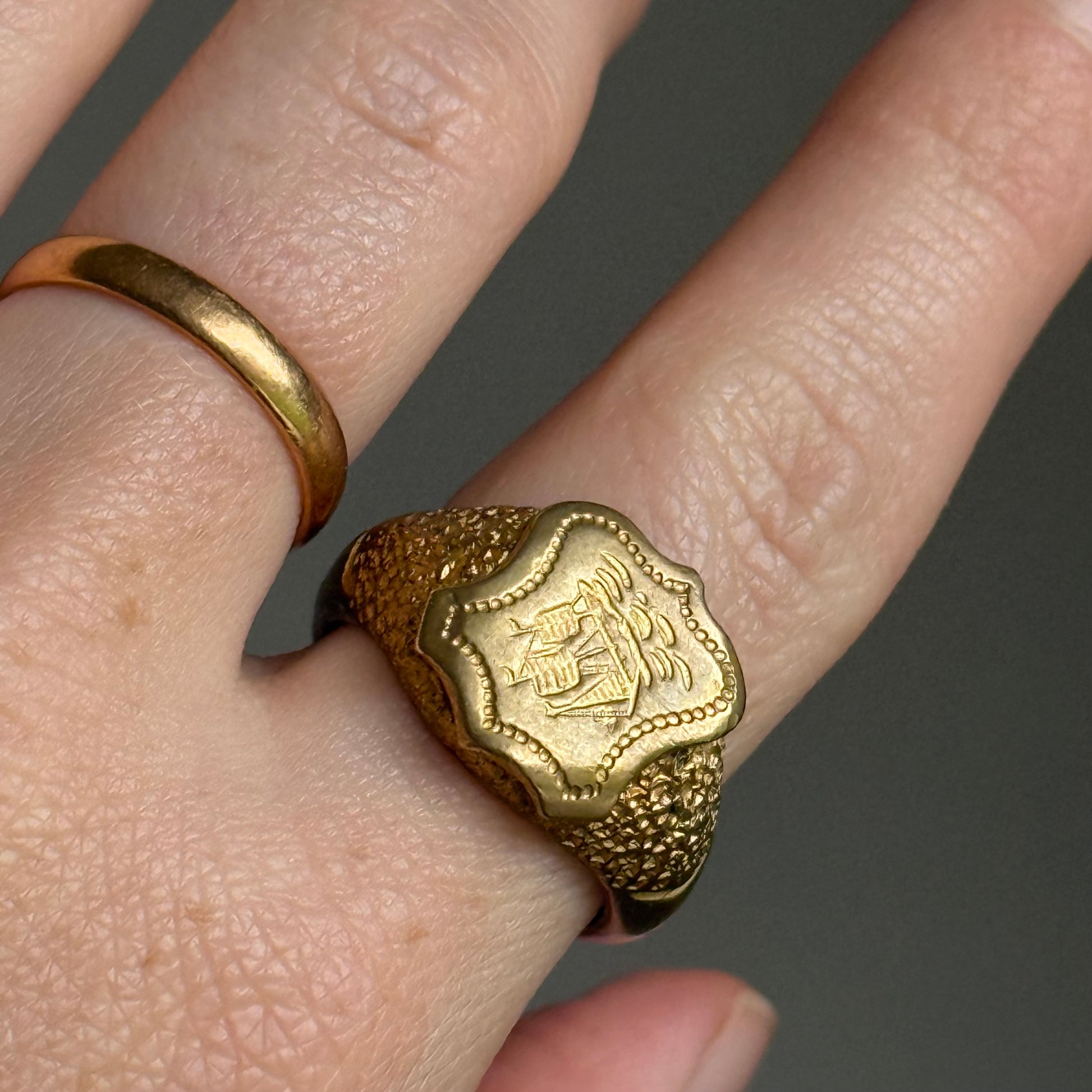 With its bold proportions and textured shoulders this ring embodies both the timeless appeal of nautical symbolism and the lasting strength of the Victorian style. It remains a wearable and characterful piece, perfect for collectors of antique jewellery or those drawn to historic, statement signet rings.