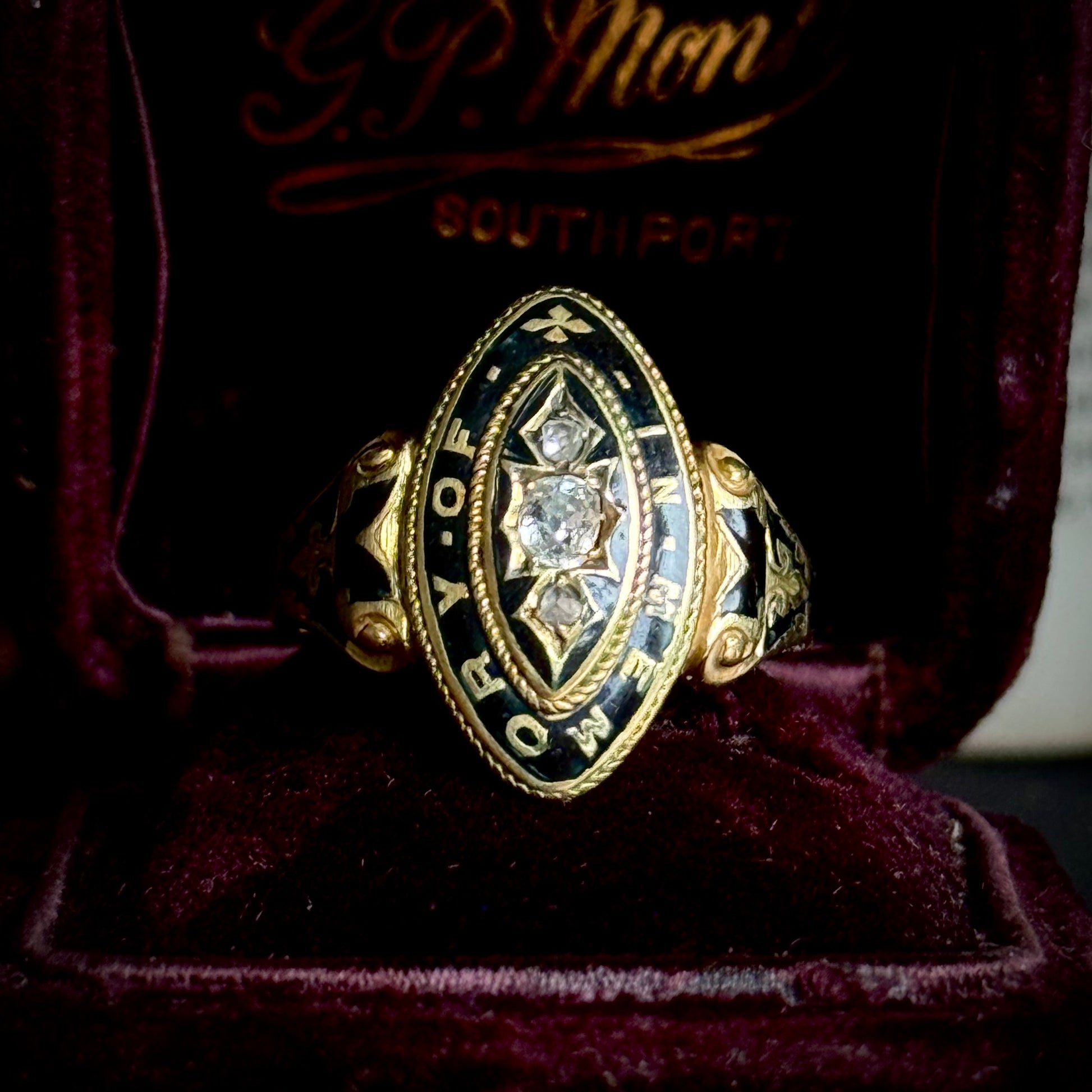 Georgian Diamond and enamel Mourning Ring in 18 Carat Gold